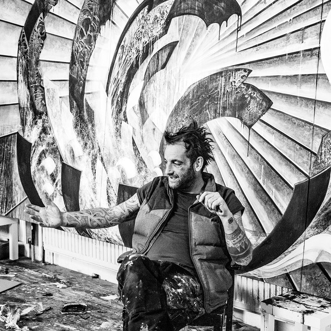 Ein monochromer Tanz mit den Pinseln im Großformat. Im Sommer 2023 bekam ich die Möglichkeit das Bühnenbild für das berühmte Unlimited Festival, (ein internationales Festival für experimentelle Musik) am alten Schlachthof in Wels zu gestalten. Schon von der Dimension her sollte das eine recht spannende Arbeit werden...